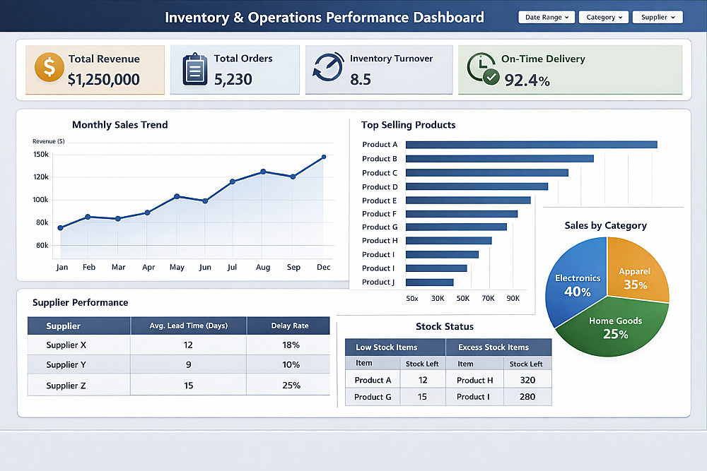 أقدم خدمة تحليل بيانات المبيعات والعمليات وتحويلها إلى لوحة تحكم تفاعلية (Interactive Dashboard) تمنح الإدارة رؤية واضحة ودقيقة لأداء الشركة، مما يدعم اتخاذ قرارات استراتيجية لزيادة الأرباح وتحسين كفاءة سلسلة الإمداد.