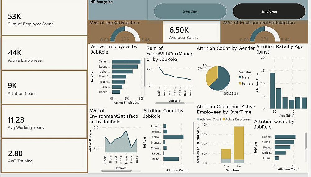 ✔ معدلات رضا الموظفين (Job & Environment Satisfaction)