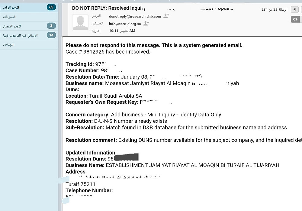 تسجيل معتمد: استخراج الرقم الرسمي مباشرة من مؤسسة Dun & Bradstreet العالمية.