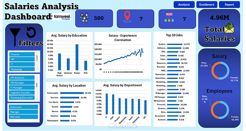 سأقوم بتصميم لوحة تحكم (Dashboard) باستخدام Microsoft Excel لعرض وتحليل البيانات بشكل منظم وسهل الاستخدام.