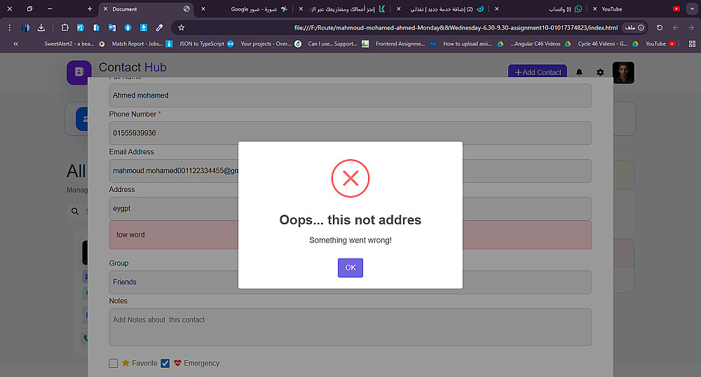 نموذج إضافة بيانات جديد مع التحقق من المدخلات.