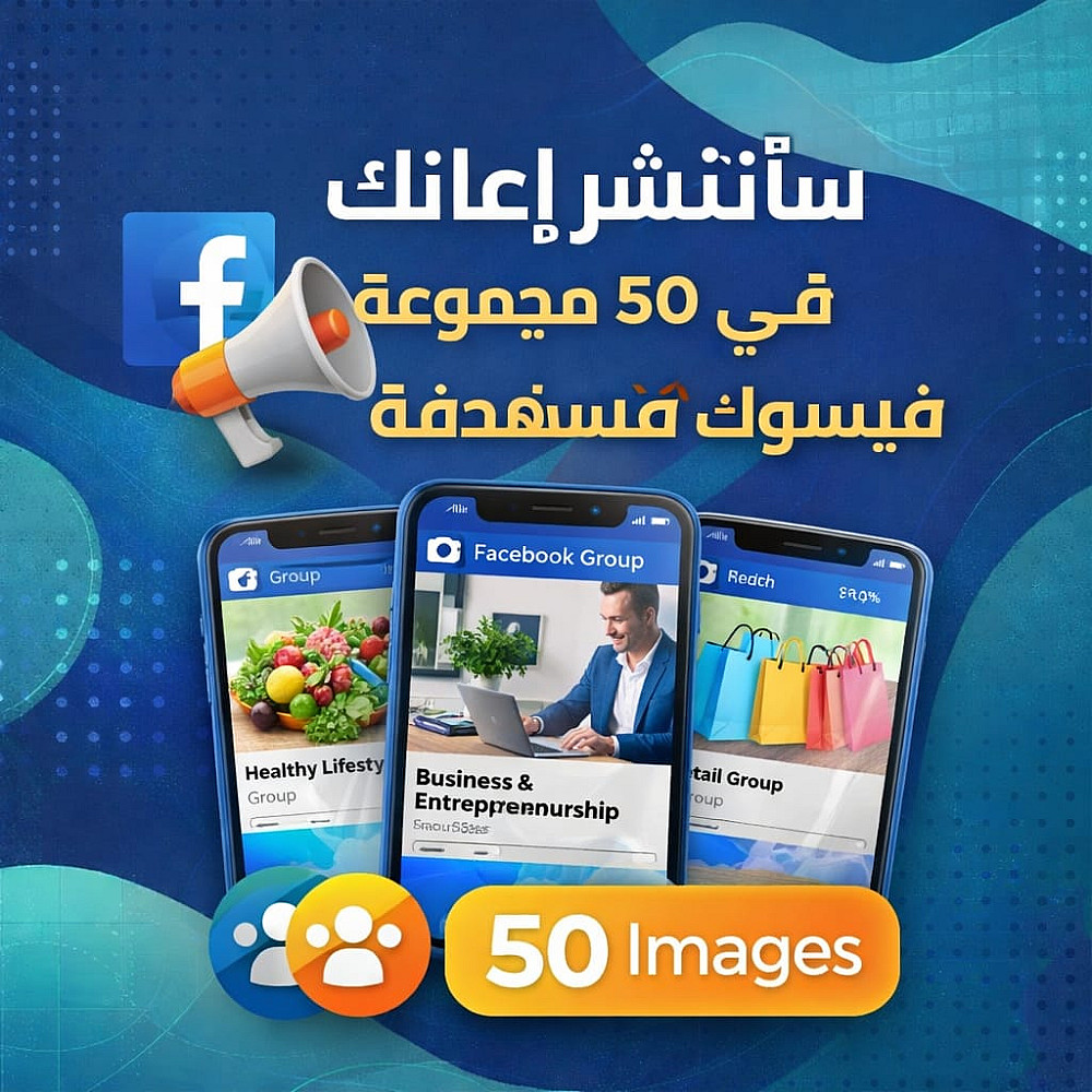 ✔ نشر إعلانك في 50 مجموعة فيسبوك