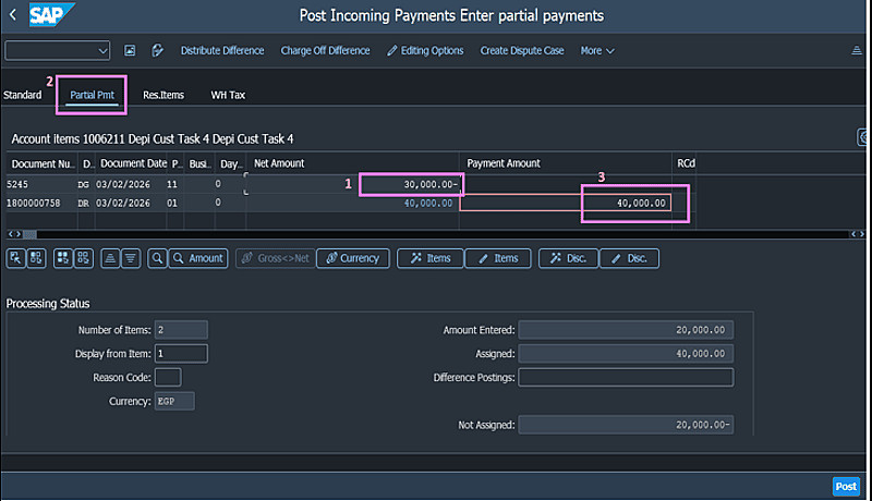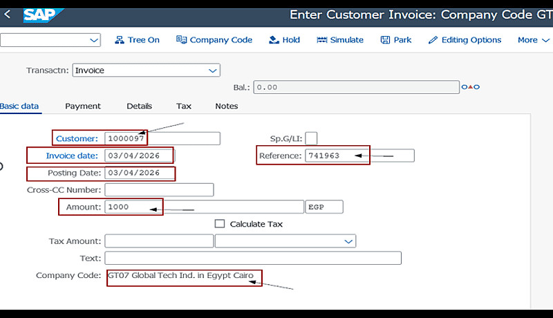 إنشاء الفاتورة داخل نظام SAP بطريقة منظمة واحترافية. مراجعة الفاتورة والتأكد من صحة العمليات الحسابية.
