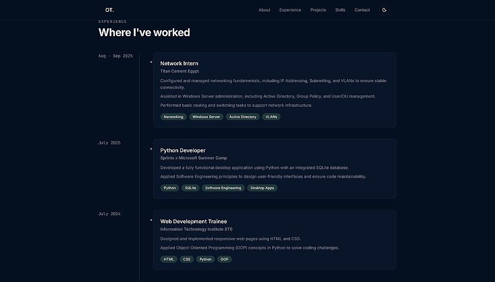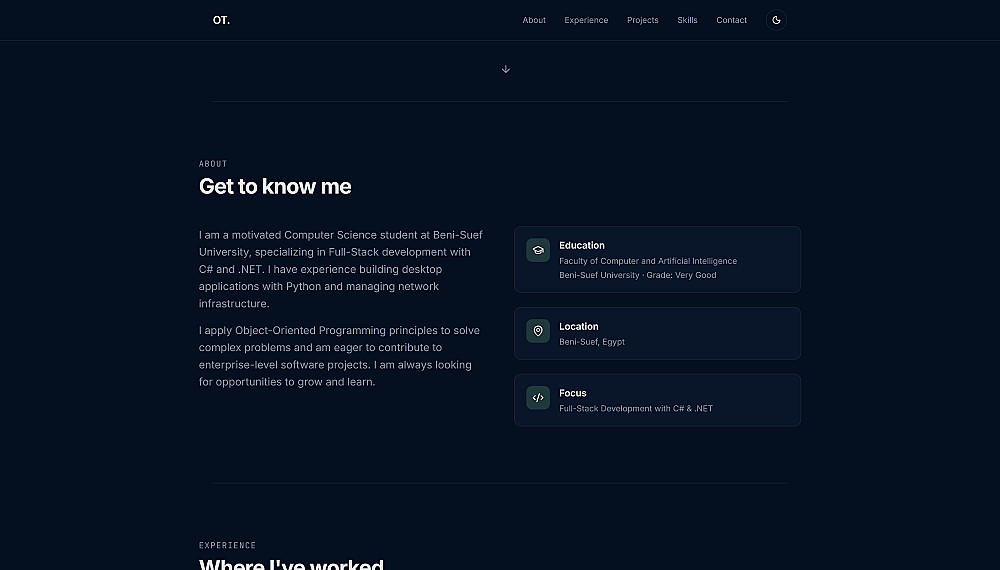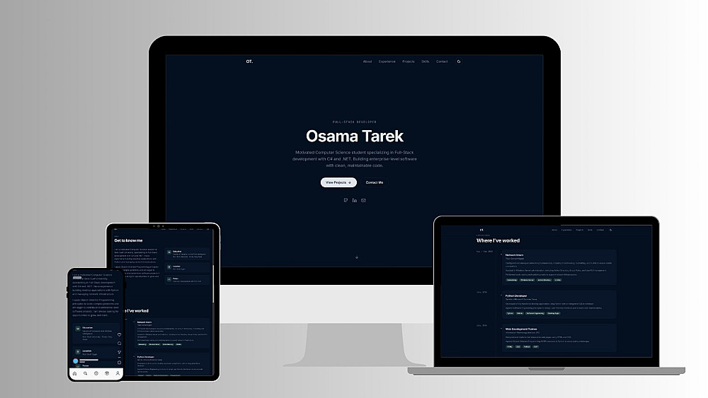 موقع Portfolio احترافي لاستعراض مشاريعك بأحدث تقنيات الويب (Next.js & Tailwind CSS) لضمان أداء عالٍ وتجربة مستخدم ممتازة.