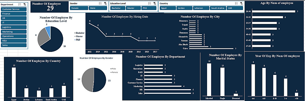 تشمل الخدمة تنظيف البيانات وتنظيمها، وتحليلها باستخدام المعادلات والجداول المحورية (Pivot Tables)، بالإضافة إلى إنشاء رسوم بيانية ولوحات معلومات بسيطة لعرض النتائج بشكل واضح وسهل الفهم.