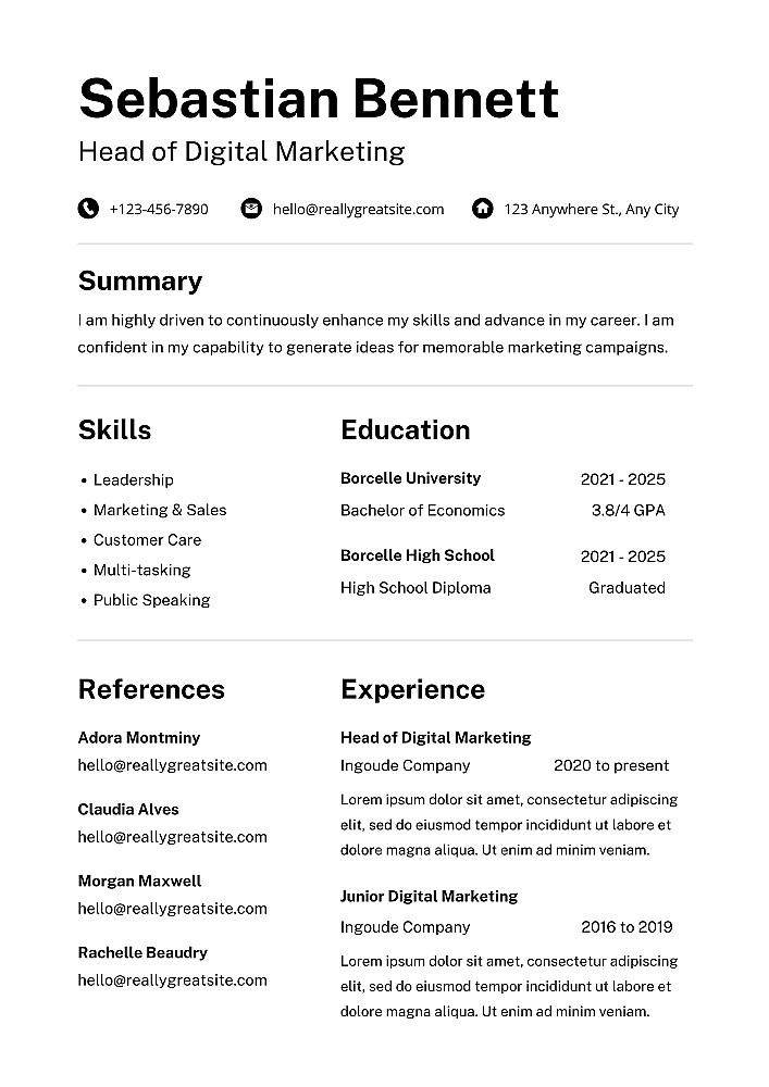 السيرة الذاتية ستكون متوافقة مع أنظمة ATS التي تستخدمها الشركات لفرز السير الذاتية تلقائيًا، مما يزيد من فرصة ظهور سيرتك الذاتية لدى مسؤولي التوظيف.