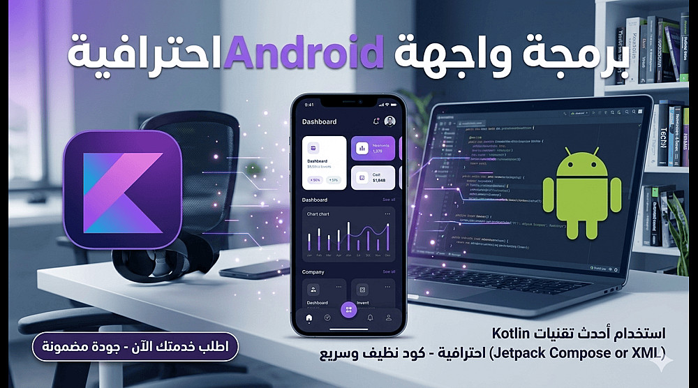 تصميم وبناء واجهة مستخدم (UI) احترافية لتطبيق أندرويد بلغة Kotlin