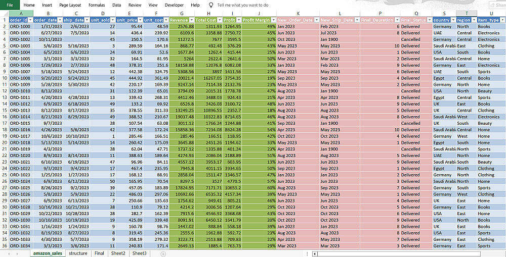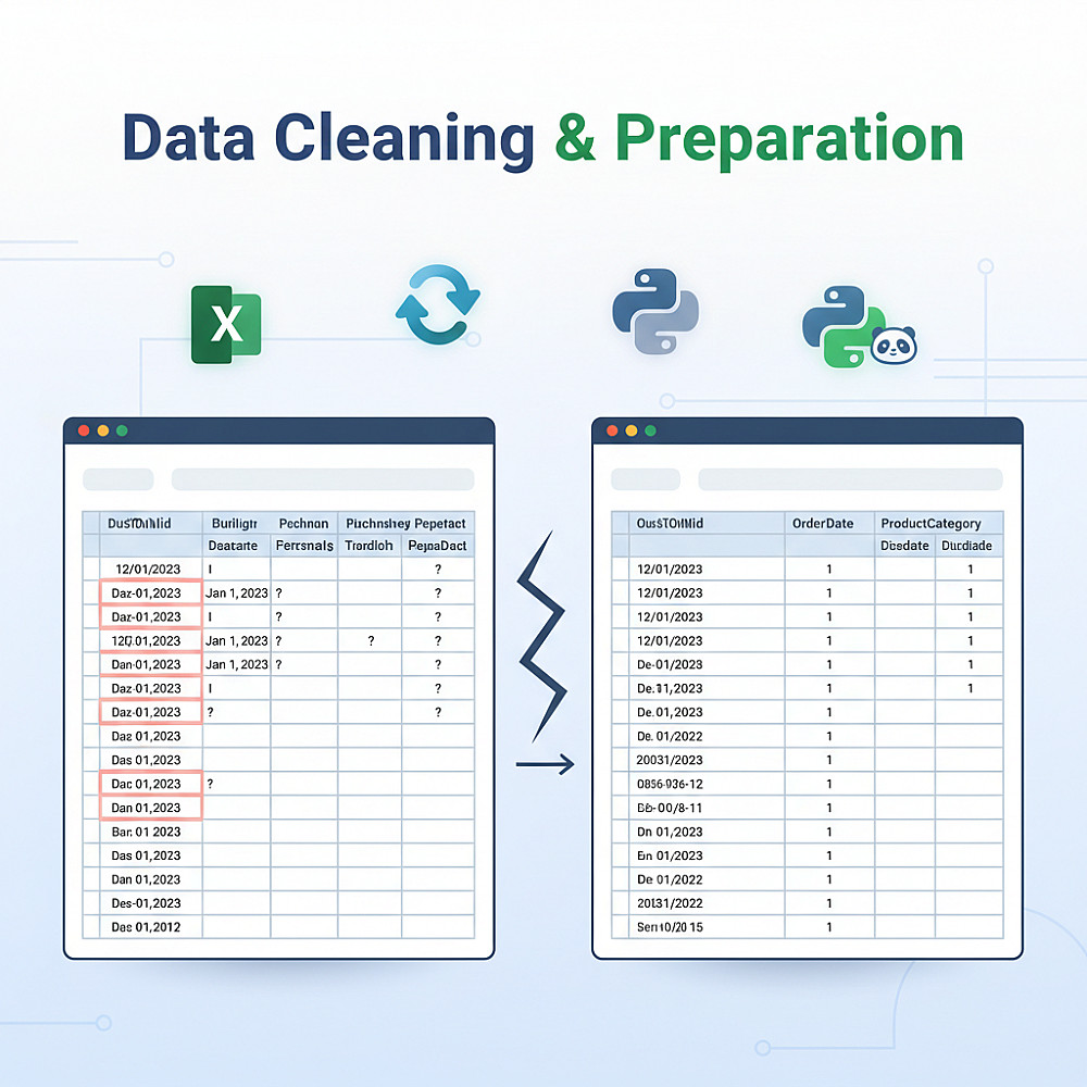 ستحصل في النهاية على Dataset نظيفة ومنظمة وجاهزة للتحليل أو بناء Dashboards.