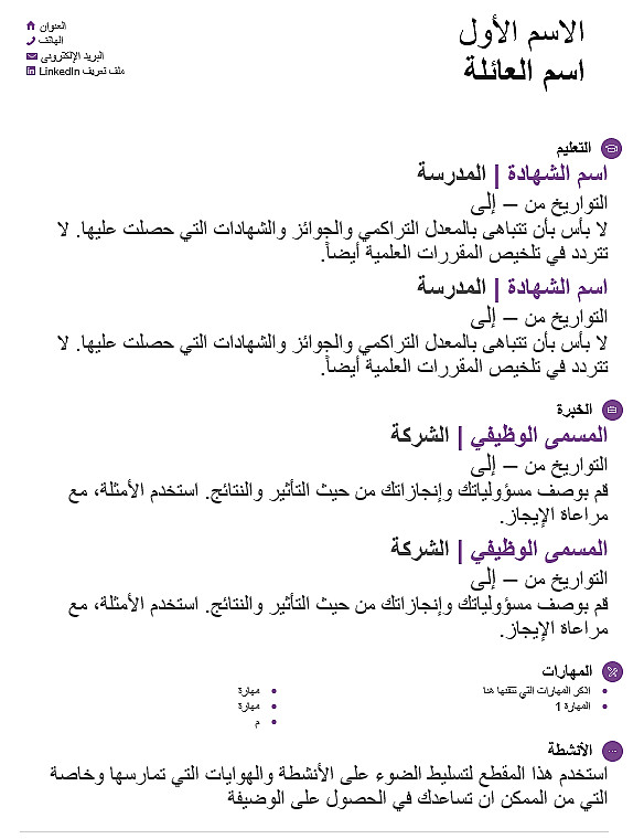 - سوف تتلقى سيره ثنائيه اللغة وبأكثر من صيغة سواء كانت Word او pdf قابلة للتعديل