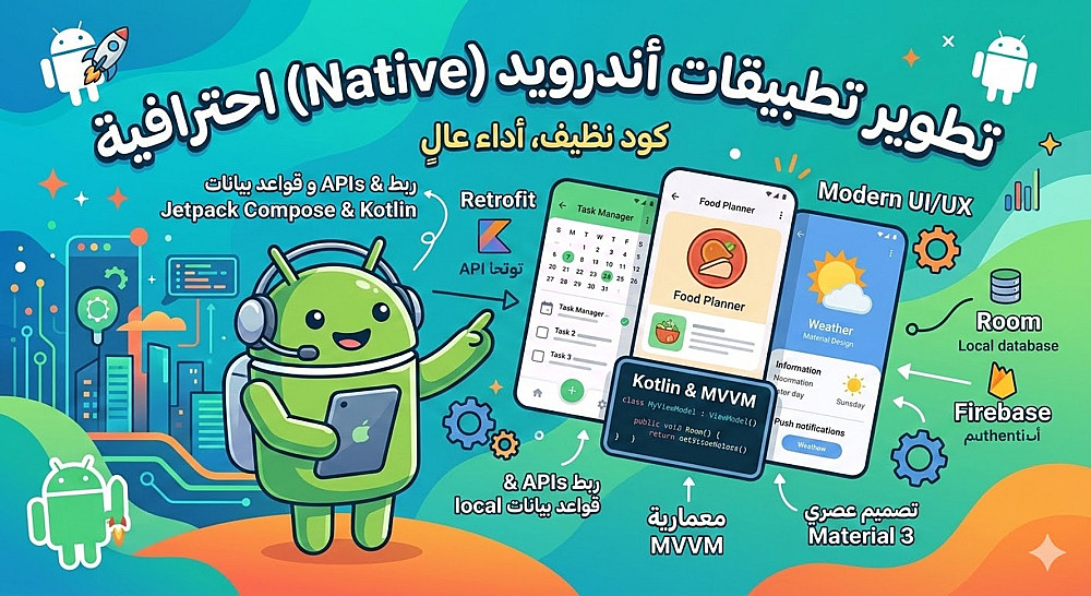 تطوير تطبيقات أندرويد Native احترافية (Kotlin & Modern Tech)