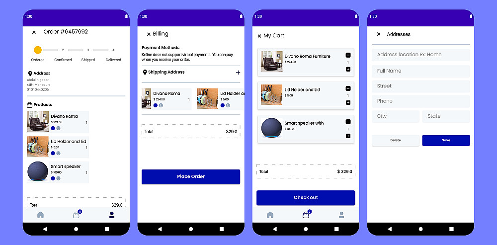 إدارة البيانات: ربط APIs عبر Retrofit، وتخزين محلي (Offline-first) باستخدام Room Database.