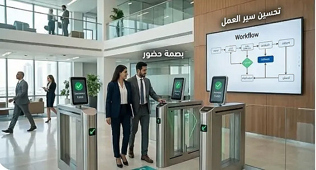 وحدة الحضور والانصراف: تسجيل الحضور، الانصراف، التأخير، والإضافي.
