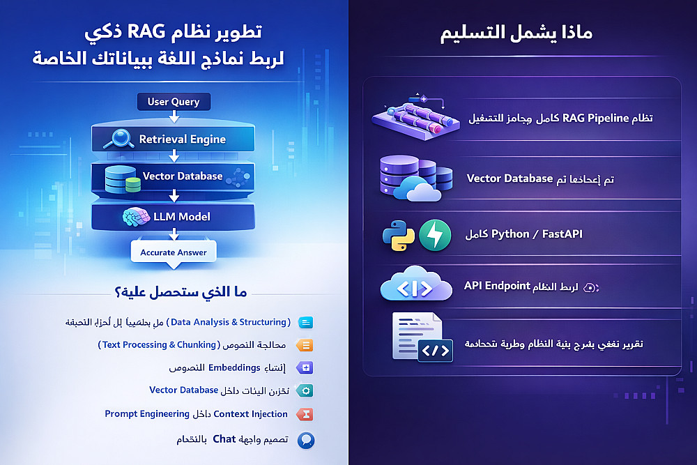 تصميم وتطوير Retrieval-Augmented Generation System لربط LLMs