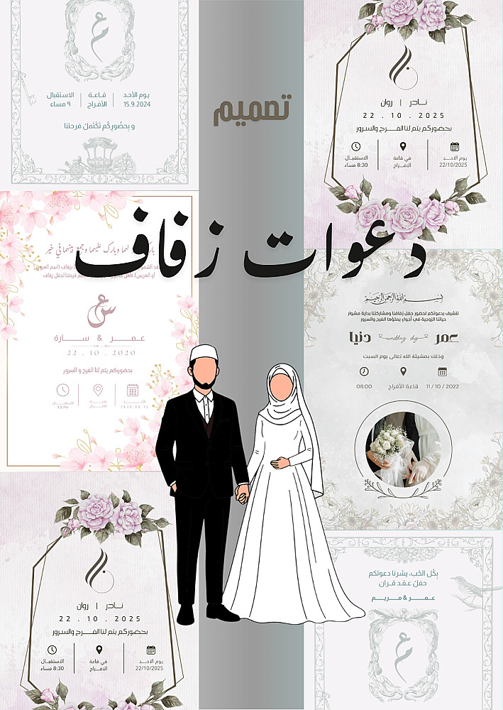 تصميم كروت وبطاقات أفراح أنيقة وجاهزة للطباعة أو للإرسال الرقمي