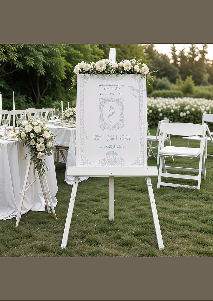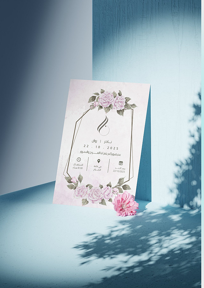 سأقوم بتصميم دعوة زفاف مميزة يمكن استخدامها للطباعة أو للإرسال عبر واتساب ووسائل التواصل الاجتماعي.