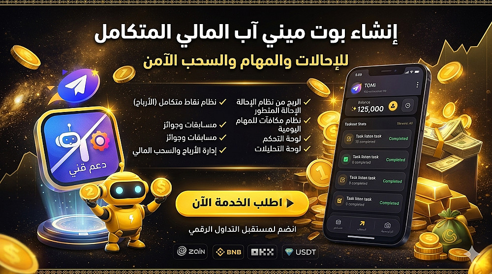 إنشاء بوت تلغرام Mini App احترافي للربح من الإحالات والمهام والسحب المالي