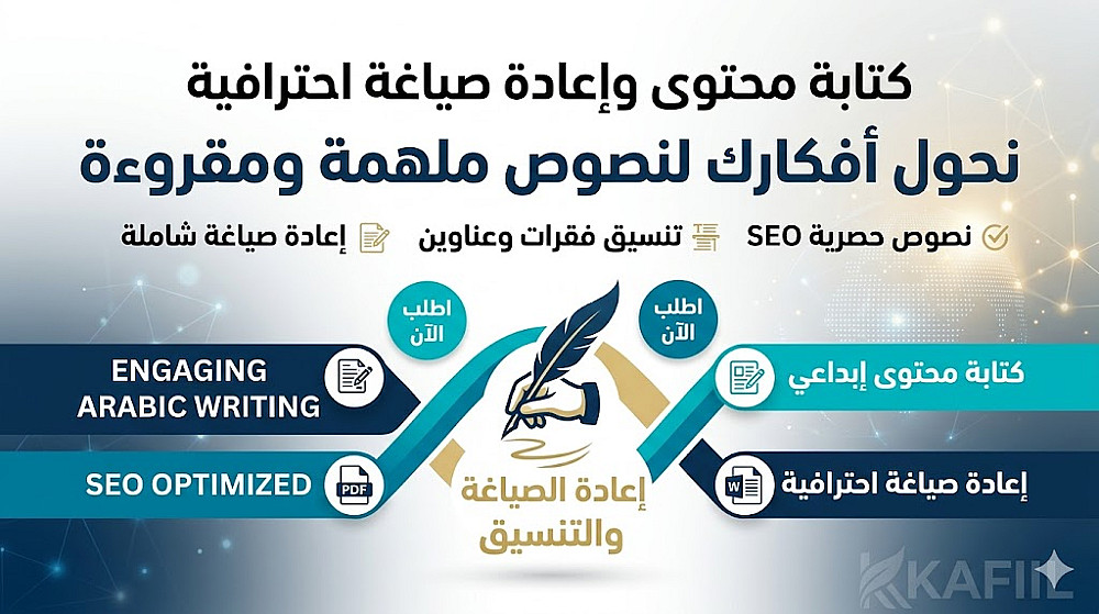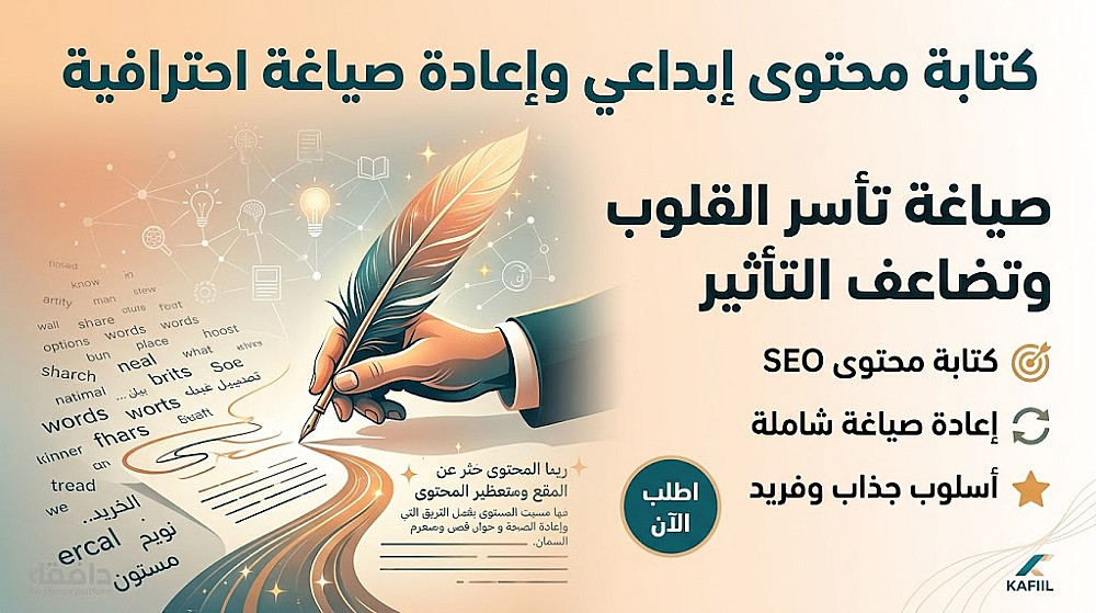 أكتب لك محتوى حصرياً وجذاباً لموقعك أو مدونتك. صياغة لغوية سليمة، أسلوب شيق، وبحث دقيق في الموضوعات المطلوبة.