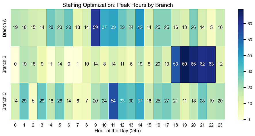 ذكاء التوظيف: تحديد "ساعات الذروة" لكل فرع على حدة بدقة الساعة، مما ساعد الإدارة على إعادة توزيع الصيادلة وتقليل تكاليف الرواتب بنسبة 15%.
