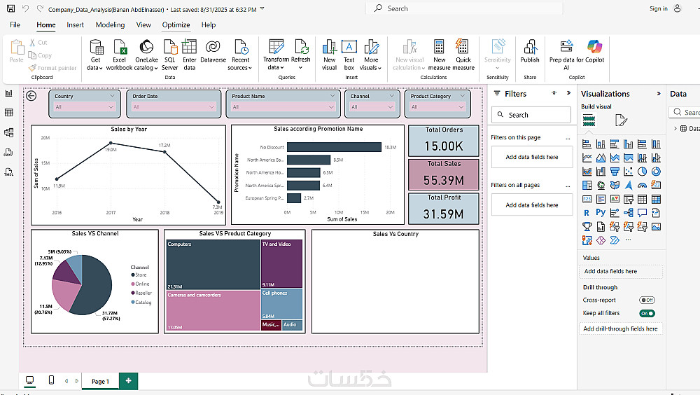 سأقوم بتصميم Dashboard احترافي باستخدام Power BI لتحويل البيانات الخام إلى تقارير تفاعلية تساعد في تحليل المبيعات والأرباح واتخاذ القرارات