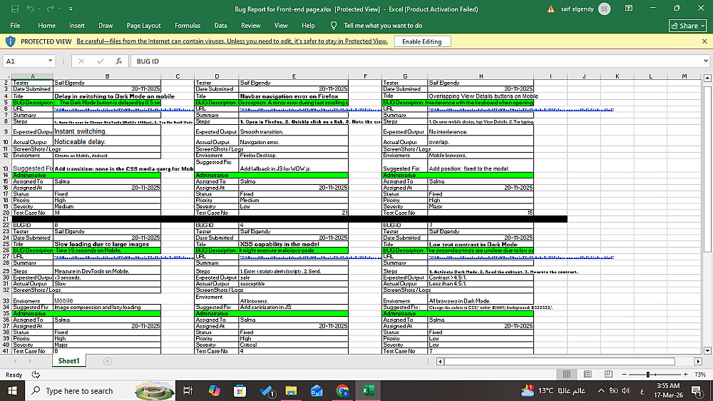 تقرير احترافي بالأخطاء (Bug Report) مع خطوات واضحة ولقطات شاشة