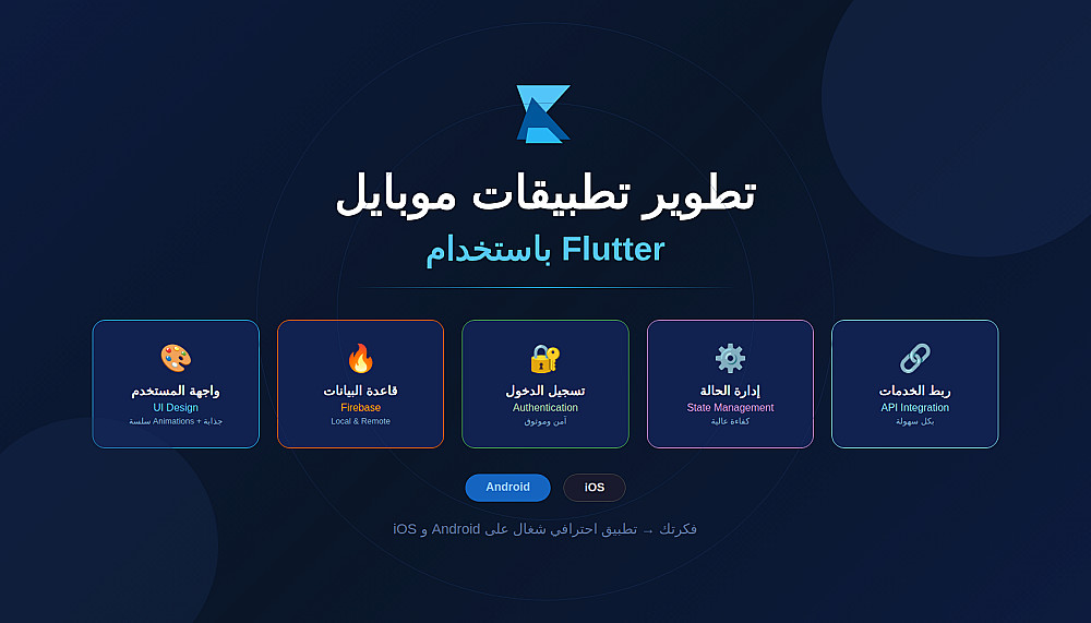 بقدملك تطبيق موبايل متكامل يشتغل على Android وiOS باستخدام Flutter،