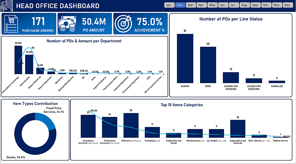 في نهاية المشروع، ستحصل على ملف Excel كامل (.xlsx) يحتوي على لوحة المعلومات التفاعلية ونموذج البيانات المدمج، جاهز للاستخدام والتحديث بسهولة.