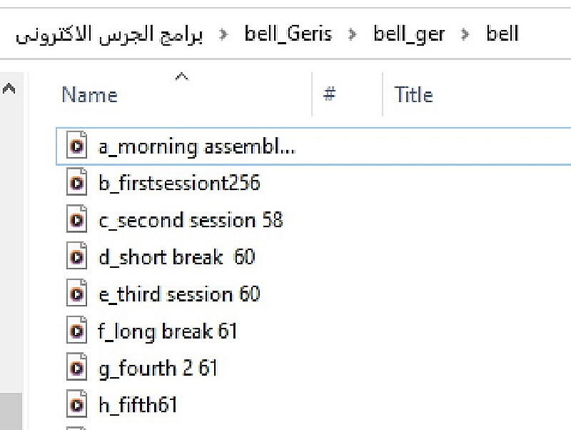 2- مجلد البرنامج نفسه المشتمل على ملف اليست اب - ملف التشغيل و الملفات المساعدة الاخرى و ملف ظبط مواعيد الجرس المدرسى او اى مواعيد اخرى تناسب اى مؤسسة اخرى و ملف تعليمات و و وصف طريق ضبط و تشغيل البرنامج