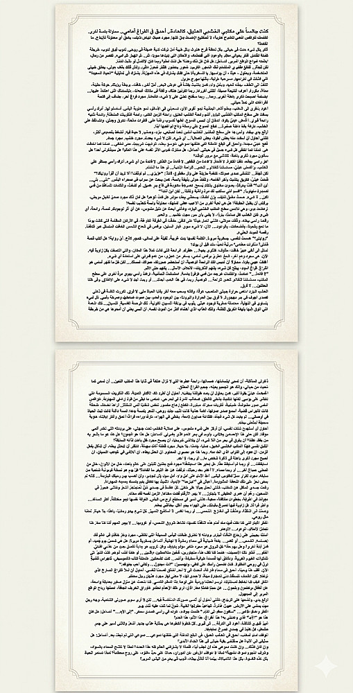 بصفتي محرراً أدبياً متفحصاً، أقدم لك خدمة "التحرير الواعي". أنا لا أقوم فقط بتصحيح الهمزات وضبط النحو، بل أمنح نصك "نفسًا أدبيًا" يجعله أكثر تماسكاً وتأثيراً في قلب القارئ.