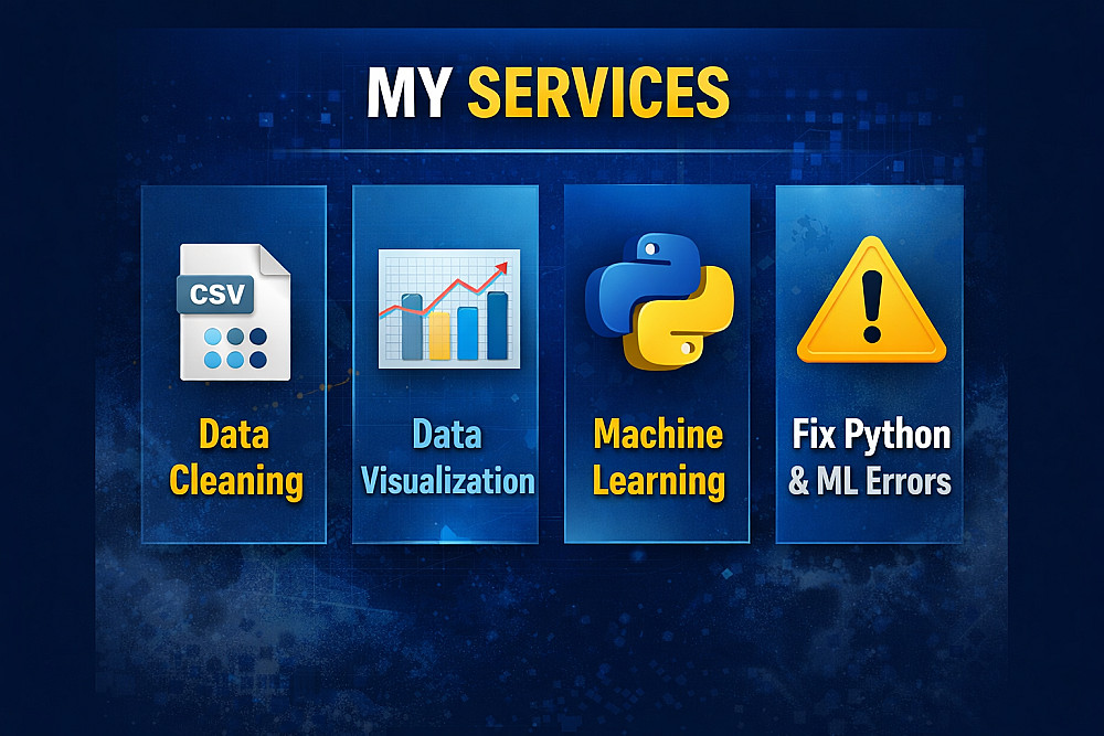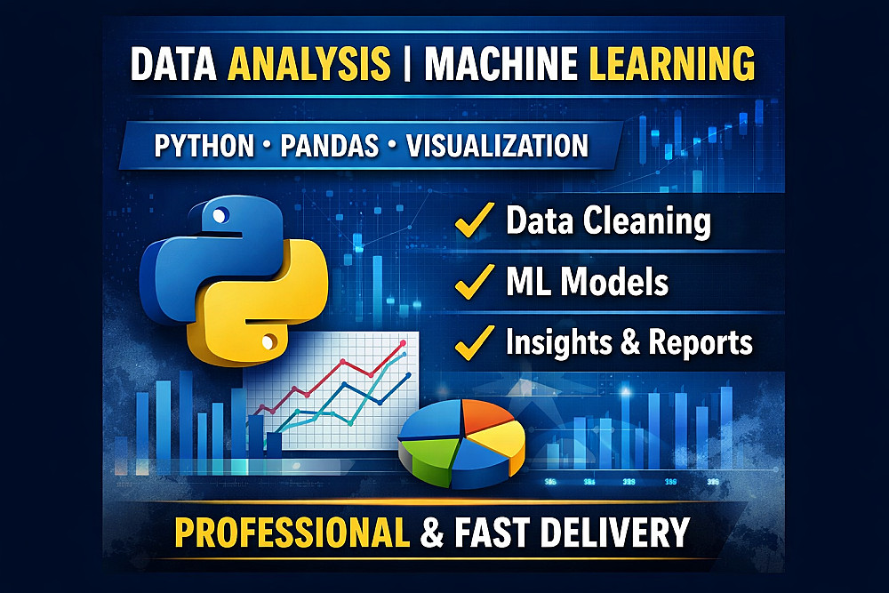أقدم لك خدمة احترافية في تحليل البيانات وبناء نماذج Machine Learning لمساعدتك على فهم بياناتك والتنبؤ بالنتائج بدقة.