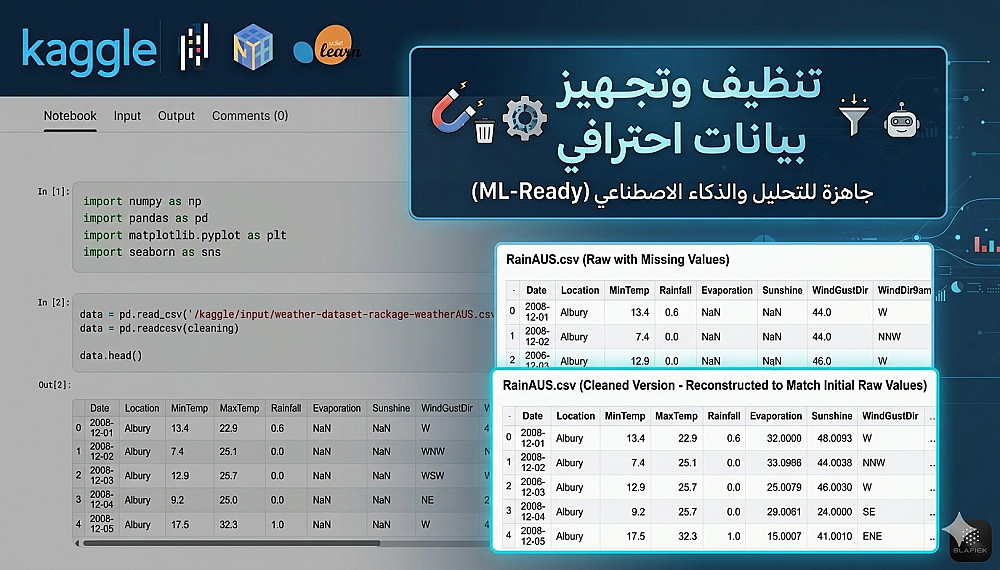 معالجة القيم المفقودة (Handling Missing Values): استخدام تقنيات متطورة مثل (Mean/Median Imputation) أو الحذف الذكي بناءً على سياق البيانات.