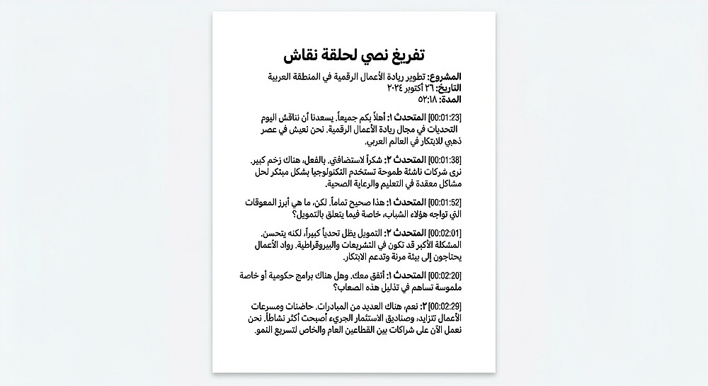 تفريغ صوتي احترافي عربي وإنجليزي بدقة عالية + تنسيق كامل وجاهز للاستخدام.