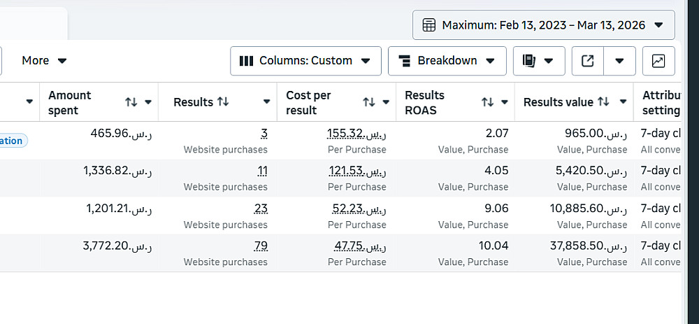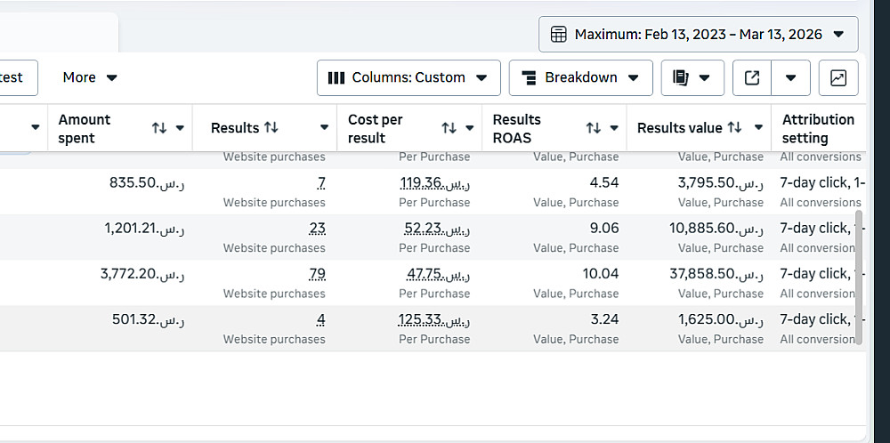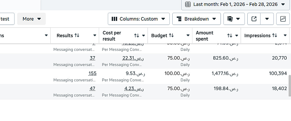 متابعة أداء الحملات بشكل يومي والعمل على تحسينها من خلال تعديل الاستهداف أو الميزانية أو الإعلانات المستخدمة، بهدف تقليل تكلفة النتائج وتحقيق أفضل أداء ممكن.