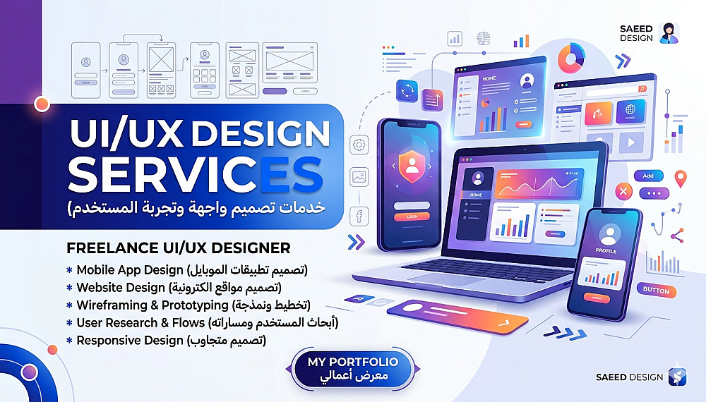 أقدّم خدمة تصميم UI/UX احترافية تركز على إنشاء تجربة استخدام سلسة وجذابة تحقق أهداف مشروعك. أعمل على فهم فكرتك وتحليل جمهورك المستهدف قبل البدء في التصميم لضمان تقديم واجهات عصرية وسهلة الاستخدام تعكس هوية مشروعك وتزيد من رضا المستخدمين.
