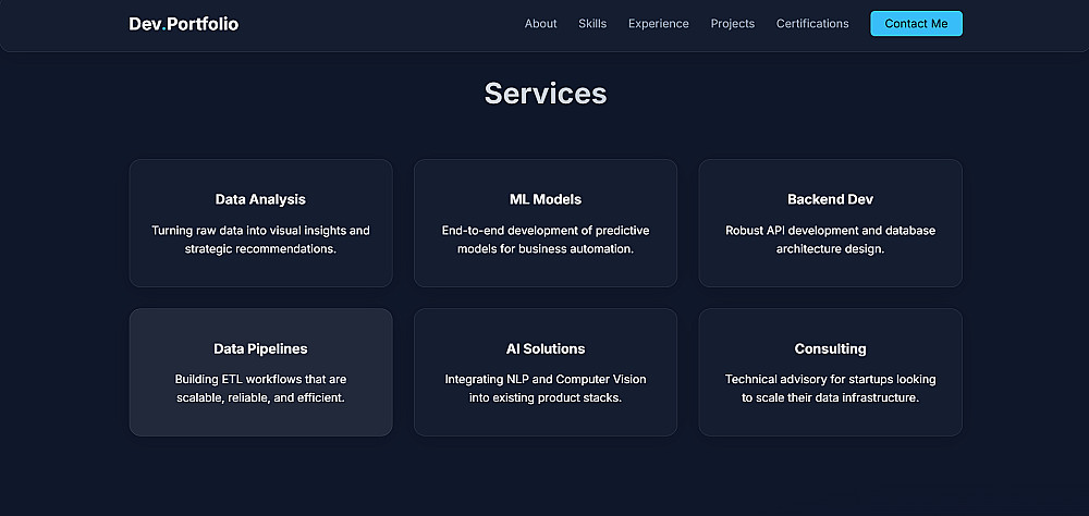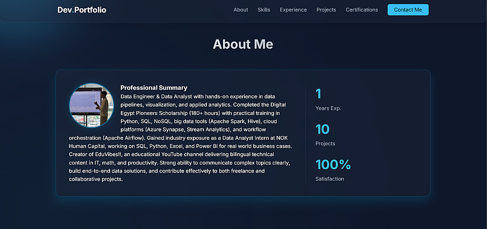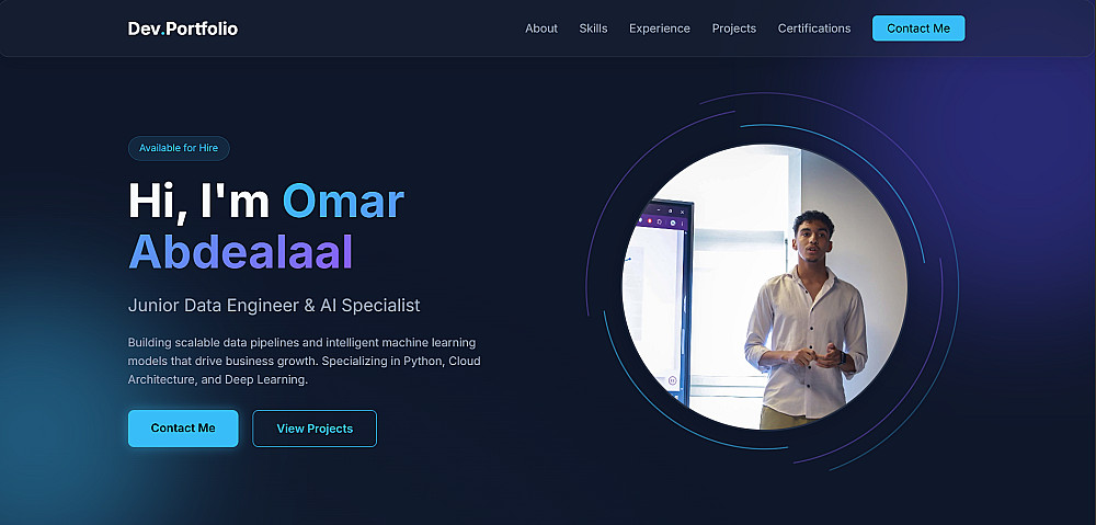 قمت ببناء موقع تعريفي احترافي يعكس الهوية البصرية والمهارات التقنية بشكل عصري. تم التركيز في هذا المشروع على كتابة كود نظيف (Clean Code) ومنظم يسهل التعديل عليه مستقبلاً.