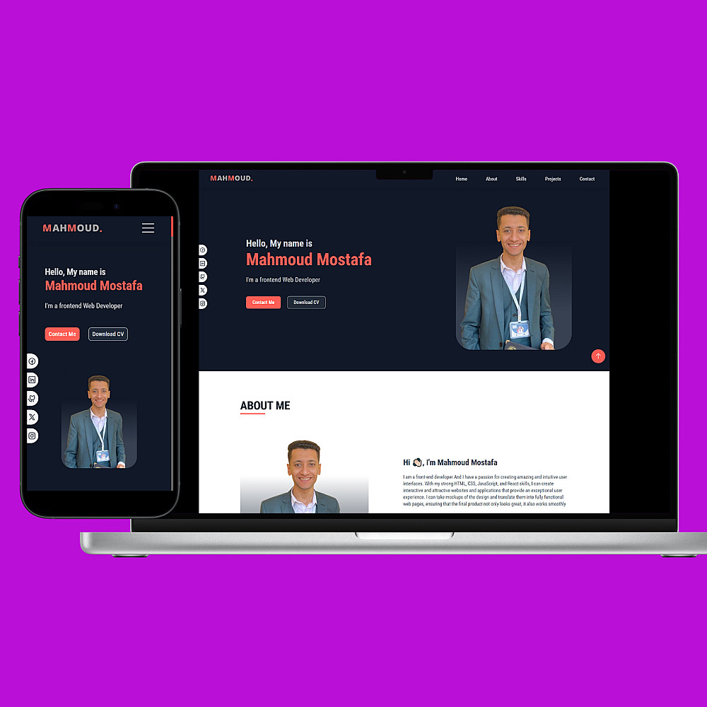 هل تبحث عن موقع شخصي (بورتفوليو) احترافي يعرض مهاراتك، مشاريعك، وسيرتك الذاتية بطريقة عصرية؟ أقدم لك خدمة تصميم وتطوير موقع شخصي متجاوب بالكامل، يعمل على جميع الأجهزة (جوال، جهاز لوحي، كمبيوتر) وبأحدث تقنيات الواجهات الأمامية.