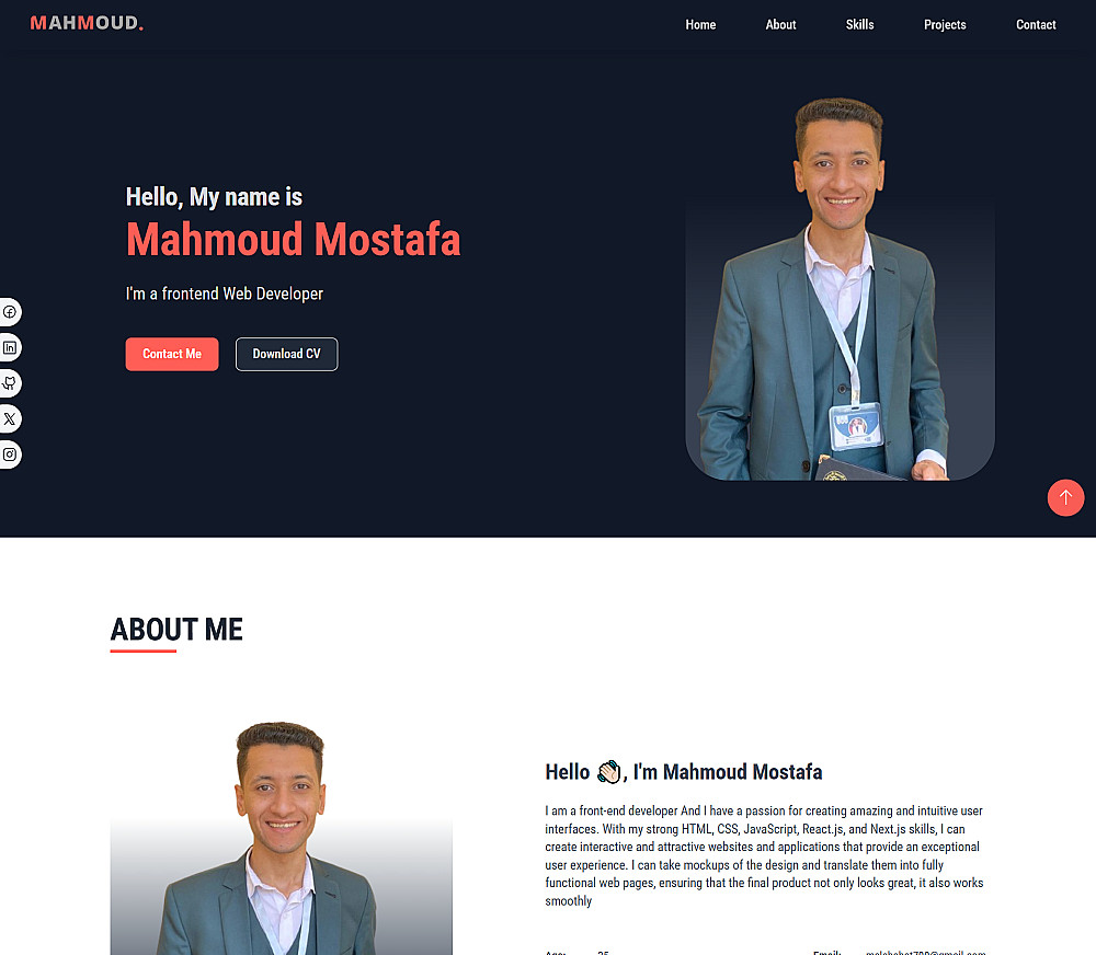 - صفحة "عنّي" مفصلة (خبرات، مهارات، شهادات)