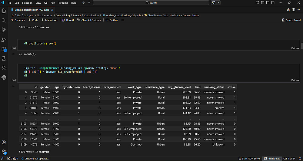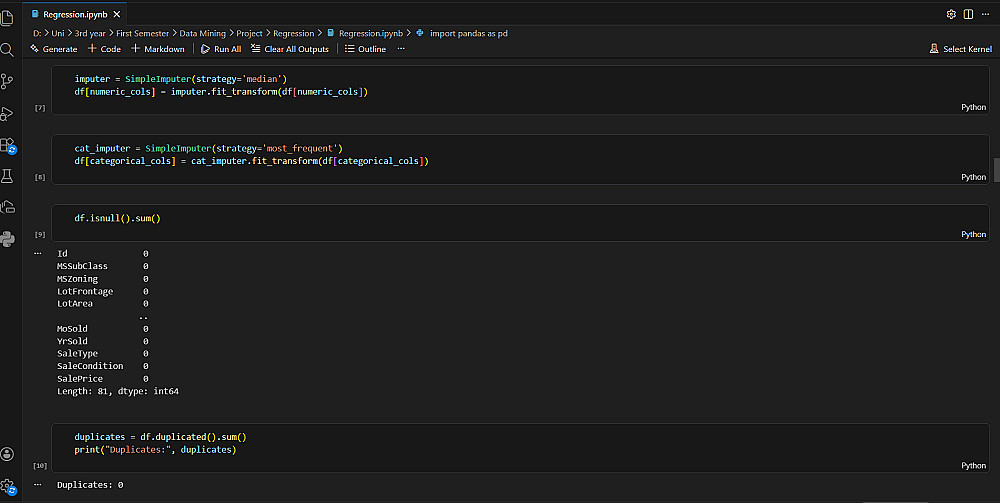 تنظيف البيانات (إزالة القيم الناقصة والتكرار)