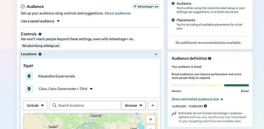 عدد الإعلانات (Ad Sets): 2 (لاختبار الجمهور)