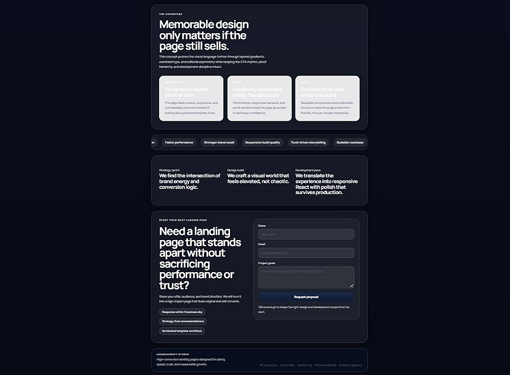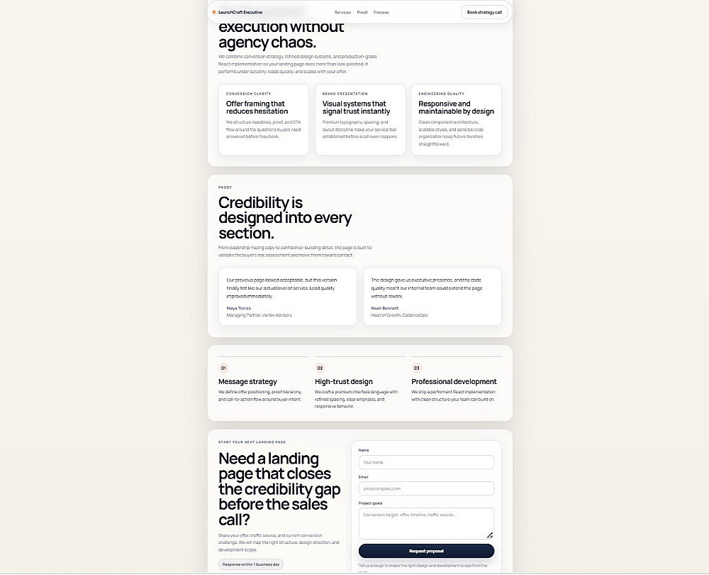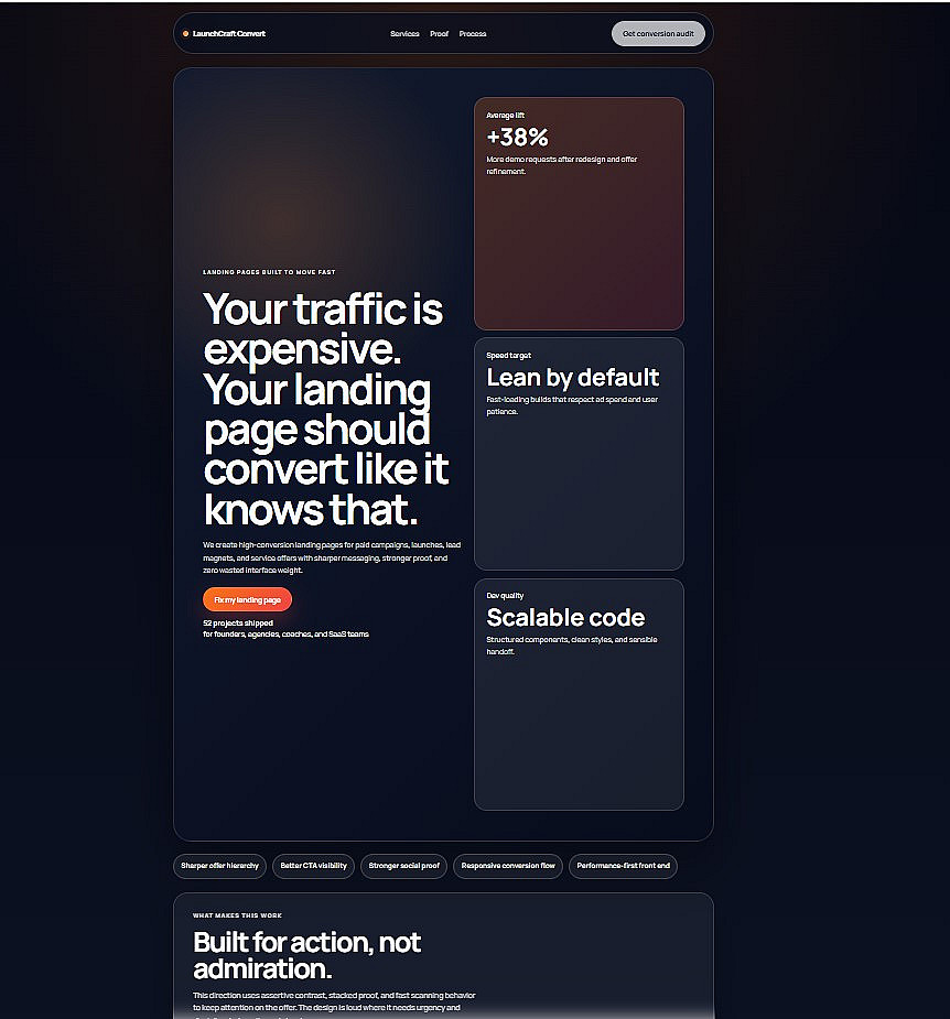 أنا مطور Full Stack متخصص في تصميم وتطوير صفحات هبوط سريعة، جذابة، ومبنية على أسس تسويقية لزيادة معدل التحويل (Conversion Rate)، وليس مجرد تصميم شكلي فقط.