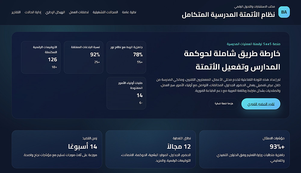 نظام إدارة متكامل مع لوحة تحكم احترافية مناسب للمدارس، الشركات، المراكز التدريبية.