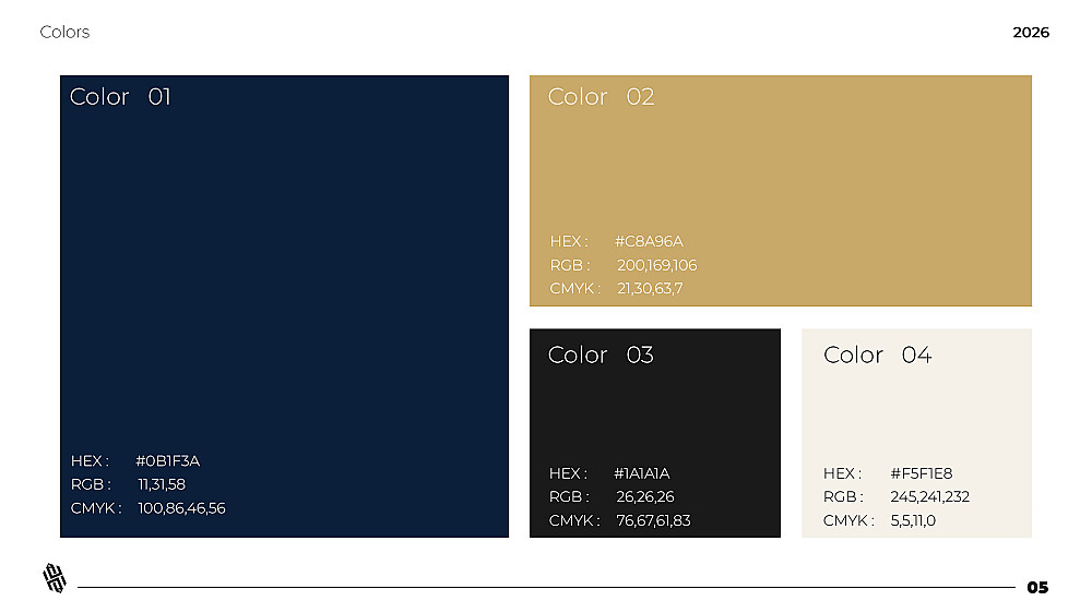1- الشعار 2- الالوان 3- الايقونات 4- الباترن 5-الخطوط