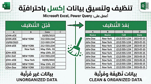 تنظيف البيانات: إزالة التكرارات، تصحيح الأخطاء الإملائية، وتوحيد الصيغ.
