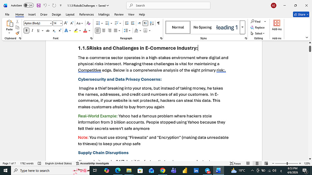 التنسيق الجمالي: لا أكتفي بالإدخال فقط، بل أهتم بشكل الملف ليكون مريحاً للعين واحترافياً عند العرض.