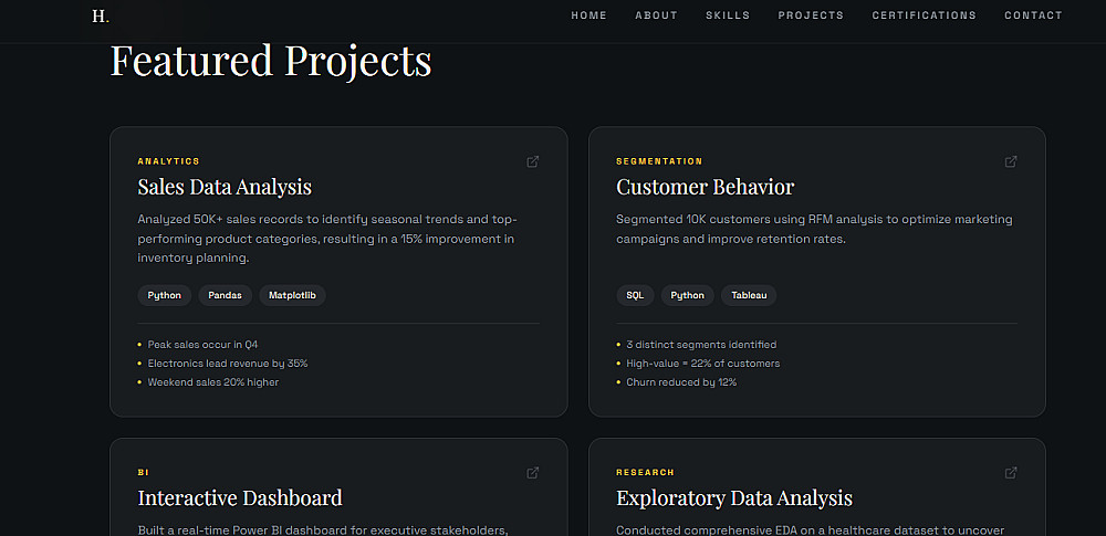 أعمل على إنشاء Portfolio مخصص يعبر عن هويتك ومجالك بدقة، مع تجربة استخدام سلسة وتصميم متجاوب يضمن ظهور موقعك بشكل مثالي على جميع الأجهزة.