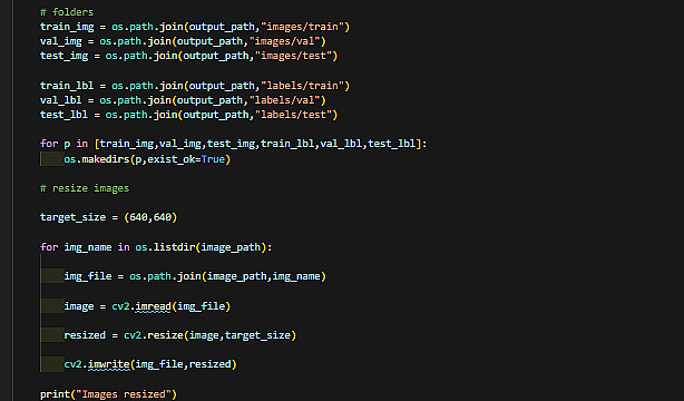 تجهيز الصور (Resizing) وتوحيد أبعادها (زي 640x640).