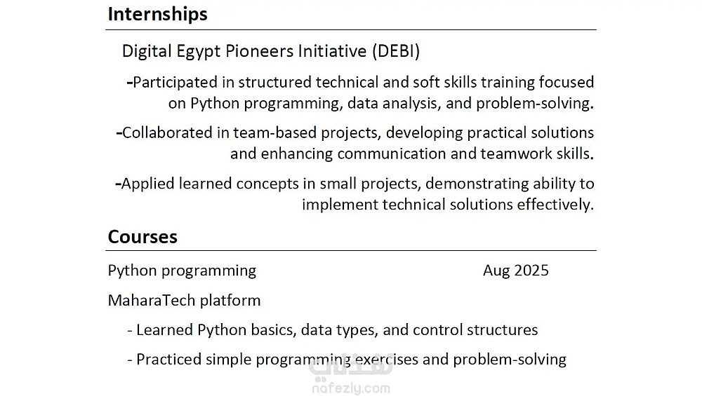 • تصميم CV منظم وسهل القراءة