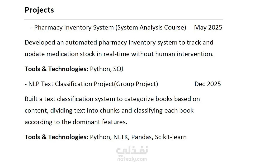• تنسيق احترافي للأقسام والمعلومات