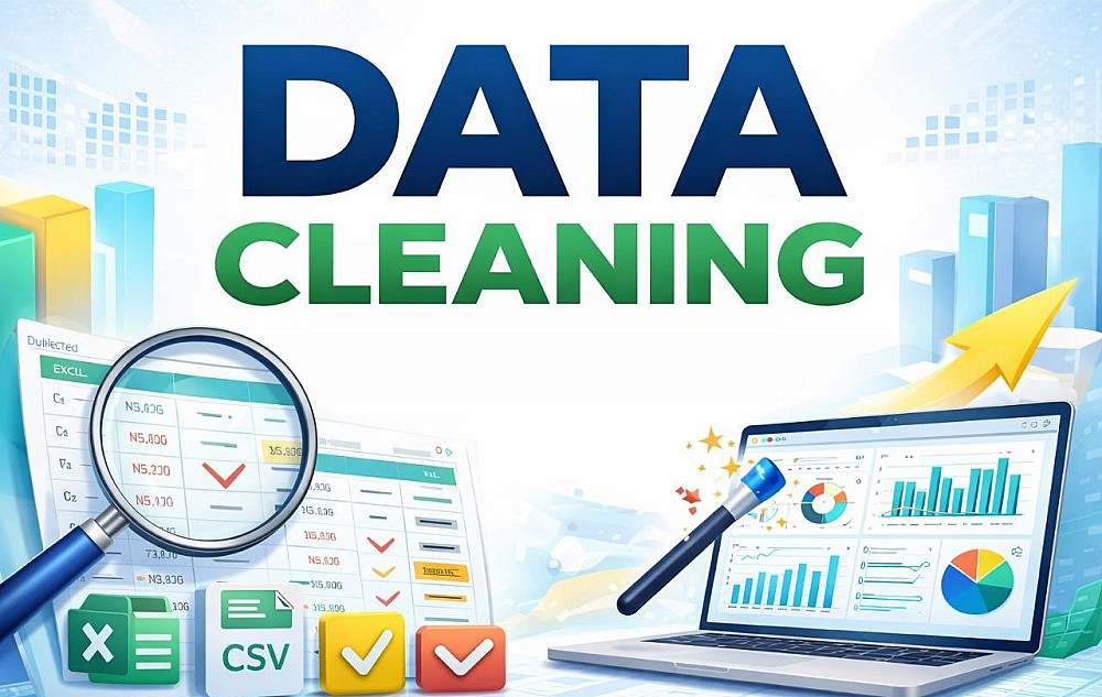 هل لديك ملف بيانات غير منظم او يحتوي علي اخطاء ؟ اقدم لك خدمة تنظيف الداتا وجعلها جاهزة للتحليل و مناسبة لبناء تقارير صحيحة .