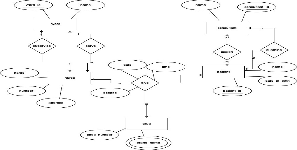 تصميم احترافى يوضح Entities , Relationships and It's types.