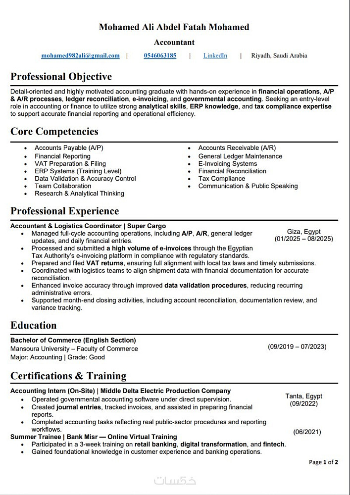 أراجع السيرة بعد الانتهاء للتأكد من خلوّها من أي أخطاء لغوية أو تنسيقية، لتظهر بشكل مثالي خالٍ من العيوب.